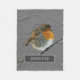 Robin Vogelfamilie mit Monogramm Graues Fleece Blanket.