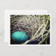 Foto eines hübschen blauen Robin's Ei im Nest. Foto ist originell und eine Art.