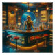 Robot Bartender in Interstellar Space Age Dive Bar Poster