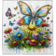 Eine Mix-Media-Abbildung eines Feldes aus Wildblumen und Schmetterlingen mit einem Roboterschmetterling.