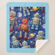 Description embark on a journey through the stars with this vibrant galactic robot exploration design set against a deep shimmering nebula filled with twinkling stars and drifting golden asteroids. This artwork features a charming squad of retro style 10 robots the central character with its bold red lightning bolt and bright yellow eyes stands out in high definition detail accompanied by its mechanical companions in classic silver and forest green. The playful sticker style white outlines around the robots give the piece of modern