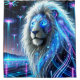 Dieser Fantasieduschvorhang hat einen Löwenroboter, der darauf abgebildet ist.