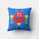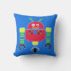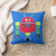 Farbenfrohe Jungen Schlafzimmer werfen Kissen in königlich blau, mit Cartoon-Grafik eines großen roten Roboter. Passen Sie dieses lustige Kissen an, um Ihren eigenen Text hinzuzufügen. Die passende Schlafzimmer- und Badezimmereinrichtung ist vorhanden.
