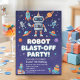 Ein süßes Design mit Robotern im Weltraum. Passen Sie die Details für eine stilvolle Geburtstagsfeier an!