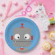 Der Teil des themed Party-Sets des Roboters diese Platte kennzeichnet das Gesicht eines niedlichen Roboters mit großen Augen, die an Ihnen Vergangenheit alle jene geschmackvollen Partyimbisse blicken.