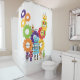 Ein niedlicher Duschvorhang für Kinder, die Lieberoboter oder jedermann, den Lieberobotik, Eigenschaftsroboter und Gänge der verschiedenen Farben und Text, der liest, oben übersetzen, Roboter anordnen und Signalton-Signalton-Signalton!