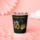 Personalisierter Name in gold moderne Typografie Rocks 50 lustige psychedelische Gitarren und Musik 50. Geburtstag Party Papier Tassen mit drei coolen farbigen Wasserfarbe elektrische Gitarre, akustische Gitarre und semi akustische Gitarre Design auf schwarzem Hintergrund. Einfach zu bedienende Vorlage, um Alter und Namen zu ändern, die das perfekte Party-Cup zu feiern fünfzig im Rock'n'Roll-Stil, ideal für einen Gitarristen, Musiker und Musiker Liebhaber. Dieses coole, moderne Musikinstrumentendesign zelebriert die musikalische Energie dieses wunderbaren Musikinstruments und ist der perfekte Weg, um ein fünfzigjähriges Jubiläum zu feiern. Original-Kunstwerk von Catherine Sweetman