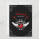 Ungewöhnliche Hochzeitseinladung in Rot, Weiß und Schwarz mit einem Rock-Roll-Thema mit der Illustration von E-Gitarren, Flügeln und eleganten barocken Vintagen Ornamenten. Personalisieren Sie es mit Ihren eigenen Informationen oder klicken Sie auf "Anpassen", wenn Sie das Layout, die Farben und den Text weiter bearbeiten möchten. Matching RSVP Karten, Briefmarke und Dankeschön Karten auch verfügbar.
