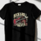 Hier ist Ihr Vintages Rockband-inspiriert T - Shirt-Design mit einer elektrischen Gitarre mit Blitzschrauben, Flammen und der Phrase "Rock & Roll Forever" 🎸 ⚡ 🔥.