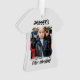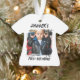 Créez un ornement de gardien pour vous souvenir de la fête d'anniversaire de votre petite rock star. Ce décor personnalisé unique en forme de t-shirt a un style de concert rock and roll et dispose d'une photo sur le devant et d'une image de disque vinyle personnalisée sur le dos avec l'année. Un grand cadeau de vacances pour les membres de la famille ou une faveur de fête pour un 1er anniversaire rockin'. One Rocks ! Montré en blanc. Tout le texte et la plupart des couleurs peuvent être customisés.
