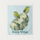 Diese Abbildung zeigt zwei Rock Wrens / Tukes auf einem Alpenfelsen. Der Felswren ist ein kleiner Vogel, der sich in den alpinen Regionen der Südinsel Neuseelands befindet. Die Vögel liegen auf einem stilisierten Felsen, der von Moos und Flechten bedeckt ist.