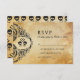 Dieser Rock n' Roll Wedding RSVP hat einen Vintagen Papierhintergrund mit schwarzem Spitzen-Schädel und Kreuzknochenpaar. Victoria ist ein erfolgreicher Hochzeitsdesigner in Jupiter, Florida, in der Nähe von West Palm Beach.