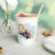 Ein Mann, der mit einer Rakete auf dem Rücken fliegt. Dieses Design ist wirklich effektiv für diese Papieraufnahmen