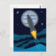 Szene, die ein Raketenschiff mit einem kosmischen Hintergrund von Nebulae, Monden und Planeten darstellt.
