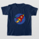 Illustration der niedlichen Rakete im Weltraum, umgeben von Sternen und einem kleinen grünen Raumschiff. Entspricht auch den
