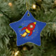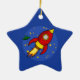 Illustration der niedlichen Rakete im Weltraum, umgeben von Sternen und einem kleinen grünen Raumschiff. Entspricht auch den