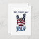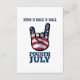Hand mit Rock und Roll Hörner Symbol mit amerikanischer Flagge eingebettet in ihr. "Haben Sie eine Rock'n'Roll" oben und "Amerikanische Unabhängigkeitstag" unten.