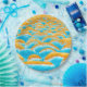 Ein schönes Digitalmuster aus einem Foto einer Ausstellung im Memphis Tennessee, bestehend aus großen, abgerundeten Felsen. Dieses Foto wurde digital erweitert, um die Farben hellblau, gelb, braun und weiß zu ändern.