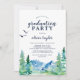Diese Rocky Mountain Abschlussfeier lädt zu einem Outdoor-Event ein. Das Design zeichnet sich durch eine blau-grün gestrichene Wildnislandschaft mit Aquarellkiefern, Vögeln und Bergen aus.