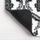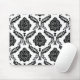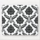 A vintage style decorative damask surface pattern influenced by rococo classical design in black detail on a white background.