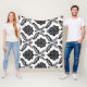 Rococo Damask Lg Pattern Black on White Fleecedecke