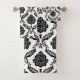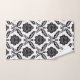 A vintage style decorative damask mixed size surface pattern influenced by rococo classical design in black detail on a white background.