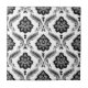 A vintage style decorative damask surface pattern influenced by rococo classical design in black and grey details on a white background.