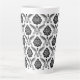 A vintage style decorative damask surface pattern influenced by rococo classical design in black and grey details on a white background.