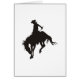 Schwarz-Weiß-Silhouette eines Rodeo Cowboy in der Luft auf einem Sattelbronc.