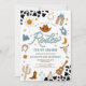 Saddle up for a fun-filled celebration with this western rodeo themed 2nd birthday party invitation! Featuring cowboy hats, boots, horseshoes, cacti, guitars, and a sheriff badge against a bold cow print background, this design perfectly captures the spirit of the Wild West. The playful fonts and rustic illustrations make it ideal for little cowboys and cowgirls. Personalize easily with your party details and create a memorable keepsake for guests. Perfect for rodeo, western, or country-themed birthday parties.