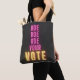 Zeigen Sie Ihre Unterstützung für die Forderung nach gleichen Rechten für alle durch die Abstimmung Pro-Choice im November! Dieses stilvolle Tote-Tasche Typografie-Design verfügt über fett rosa und gelbe Neonbriefe auf schwarzem Hintergrund mit der Meldung "Roe Roe Roe Your Vote".