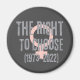 Der Kühlschrankmagnet, der den Umsturz von Roe v Wade durch den derzeitigen Obersten Gerichtshof markiert, zeigt den Grunge-Stil "Das Recht zu wählen. 1973-2022" Text grau mit hellrosa Frauensymbol auf Holzkohle Hintergrund.