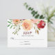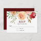 Herrliche burgundische Hochzeit mit rotem Blumenmotiv, RSVP mit einem wunderschönen Pfirsichbäumen-Blume-Bouquet über der schönen Typografie en Espanol. Antwort Akzeptor, lamentar mit dieser spanischen Karte.