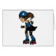 Ein fantastischer digitaler Cartoon eines tragenden Blaus des Rollen-Mädchens, die Störsenderposition spielend, wie sie um die Bahn zerreißt. Ihr langes Haar fließt hinter sie, wie ihre rosa Räder auf ihren quadskates spinnen.
