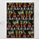 Schwarzes Scrapbook-Papier mit einem sich wiederholenden Beindesign in gelb und schwarz gestreiften Strümpfen, roten Roller-Skaten und Knien. Schädeln und Killerbienen teilen die Beine.