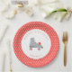 Dekorieren Sie Ihren Tisch im Stil mit diesen whimsical Roller Skate Party Teller in Korallen und Aqua. Teil einer Sammlung von Parcel Studios.