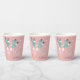Fun pastellrosa Rolle Skaten Geburtstagskuppen mit einer Retro-inspiriert Abbildung von aquamarinen Roller-Skaten auf einem Mädchen mit rosa gestreiften Röhrensocken und "Let's Roll" in einem Stil der 70er Jahre. Fügen Sie ihren Namen dunkelblaue Typografie hinzu.