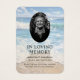 Schöne Beerdigung/Gedenkkarte/Gebetskarten mit einem Foto über einem Meereshintergrund, das sich in Richtung eines Sandstrandes rollt. Das Foto ist in Aquarell gehalten.