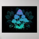 Mysteriöse, biolumineszente, halluzinogene, helle Rollhocker mit Sträuchern aus marschfarbenen Pflanze in der Nacht, dunkel, glänzend. Glühende Pilze. Goblincore, Muschroomcore