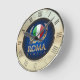 Rom, Italien | die italienische Flagge (La bandiera d'Italia oder IL tricolore italiano- rot, weiß und Grün), umgeben durch einen Kranz der Lorbeer, der ein traditionelles römisches Symbol ist. Hier hat der Lorbeer eine doppelte Bedeutung: in der römischen Kultur stellt er Sieg, Power dar, und Ehre, während in der christlichen Tradition, symbolisiert er die Auferstehung von Christus.