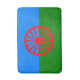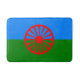 Dieses Design ist mit der romagnolischen Fahne, der internationalen Fahne der Romaner, ausgestattet. Die Fahne besteht aus einem Hintergrund von blau und grün, die Himmel und Erde repräsentieren; sie enthält auch ein 16-sprachiges rotes Chakra, oder ein Karikaturrad, in der Mitte, das die touristische Tradition des rumänischen Volkes darstellt und auch eine Hommage an die Flagge Indiens ist. Die Fahne wurde von den Vertretern verschiedener Roma-Gemeinschaften auf dem ersten Weltkongress der Romani (WRC) 1971 in Orpington gebilligt.