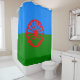 Dieses Design ist mit der romagnolischen Fahne, der internationalen Fahne der Romaner, ausgestattet. Die Fahne besteht aus einem Hintergrund von blau und grün, die Himmel und Erde repräsentieren; sie enthält auch ein 16-sprachiges rotes Chakra, oder ein Karikaturrad, in der Mitte, das die touristische Tradition des rumänischen Volkes darstellt und auch eine Hommage an die Flagge Indiens ist. Die Fahne wurde von den Vertretern verschiedener Roma-Gemeinschaften auf dem ersten Weltkongress der Romani (WRC) 1971 in Orpington gebilligt.