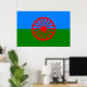Dieses Design ist mit der romagnolischen Fahne, der internationalen Fahne der Romaner, ausgestattet. Die Fahne besteht aus einem Hintergrund von blau und grün, die Himmel und Erde repräsentieren; sie enthält auch ein 16-sprachiges rotes Chakra, oder ein Karikaturrad, in der Mitte, das die touristische Tradition des rumänischen Volkes darstellt und auch eine Hommage an die Flagge Indiens ist. Die Fahne wurde von den Vertretern verschiedener Roma-Gemeinschaften auf dem ersten Weltkongress der Romani (WRC) 1971 in Orpington gebilligt.