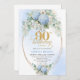 Romantic Blue Hydrangea Gold Frame 90th Birthday Einladung