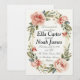 Soft blush and peach floral wedding invitation with watercolor roses and greenery wreath, featuring fully editable couple names, wedding date, venue, and RSVP details for a romantic garden or rustic chic celebration.
