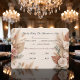 Invite guests to your rustic boho celebration with this elegant botanical aesthetic, featuring an earthy palette of soft pinks, muted greens, and warm tans.This meticulously balanced layout centers on an airy negative space, framed by soft corner arrangements against a solid cream and beige background. The composition highlights detailed printed watercolor illustrations, seamlessly blending dusty pink roses, muted green eucalyptus foliage, and textural tan and caramel brown dried pampas grass plumes. The typography demonstrates a sophisticated stationery hierarchy, utilizing an elegant handwritten calligraphy script paired with a highly legible, refined serif font.This is a flat printed image with a printed watercolor effect, not actual raised material.