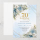 Celebrate a milestone in style with this elegant 70th birthday invitation featuring watercolor dusty blue and white flowers, soft eucalyptus greenery, and a shimmering gold frame. Designed in chic boho style with refined script lettering, this floral invitation is perfect for a classy 70th birthday party. Ideal for formal, garden, or luxury celebrations with a timeless, sophisticated touch.