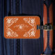 Das Gepäckschild zeigt ein wunderschönes Aquarellbild mit einem weißen, blumengeschmückten Rahmen auf einem warmen, erdigen orangefarbenen Hintergrund. Die Formulierung "Mr. & Mrs." kann leicht angepasst werden. Es ist ein großartiges Geschenk für Jungvermählte und Paare, die Jahrestage feiern und ihnen dabei helfen, ihr Gepäck auf Reisen leicht zu erkennen.