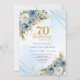 Romantic dusty blue florals gold frame 70 birthday einladung
