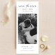 Share your love story with this bookmark save the date card. The simple design puts your favorite black and white photo front and center. Clean text and soft script make it feel modern and warm. It’s an easy way to let everyone know about your wedding.